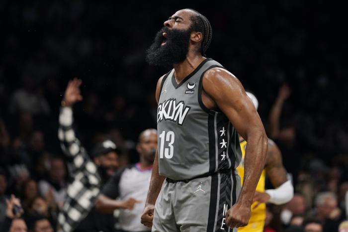上一场篮网加时险胜马刺,杜兰特和哈登都出战43分钟,赛季至今,哈登已经为篮网出战34场比赛,场均上场36.9分钟能够贡献22.4分8.1篮板安9.7助攻1.3抢断,三项命中率分别是41.7%、33.1%和86.9%;哈登单核带队曾连续4场轰下30+,其中包括三次30+三双。
