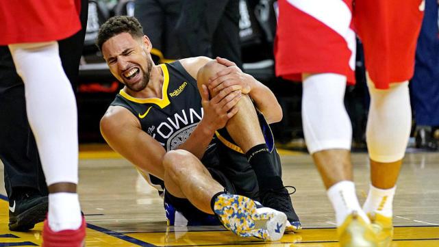 2019年总决赛对猛龙的第6战,汤普森遭遇前交叉韧带的重伤,他因此错过整个2019-20赛季。他原本计划在2020-21赛季复出,但不幸的是他在2020年11月的一次训练中跟腱撕裂,再次赛季报销,错过了2020-21赛季的而所有比赛。