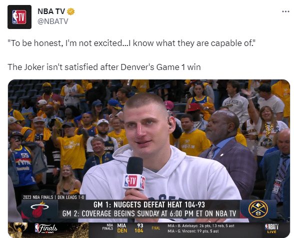 约基奇还表示:说实话,我不是很兴奋,我知道我们球队的实力。