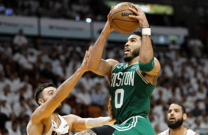 JRS直播网讯05月28日,NBA东决G6凯尔特人客场击败热火,0-3后连赢3场从而扳平总比分,东决抢七来了;塔图姆全场21投8中、三分8中0拿到31分11篮板5助攻2盖帽1抢断,上半场轰下25分带队反客为主,第三节0分,但末节带队拉开分差,怀特绝杀,最终绿军拿下G6,塔图姆带队把东决拖进抢七,NBA历史0-3落后首次逆转翻盘真要来了。