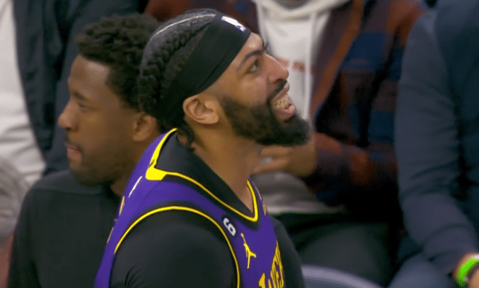 第三节6分多钟,浓眉在抢篮板时不慎踩到加布里埃尔的脚,导致脚踝扭伤,之后浓眉捂着脚踝倒地不起,当时湖人反击快攻,哈姆没有喊暂停;之后森林狼进攻,湖人没有选择犯规,浓眉一直躺在禁区,直到拉塞尔造唐斯犯规,比赛才暂停,湖人队医赶紧上场,浓眉在队友的帮助下走回替补席。