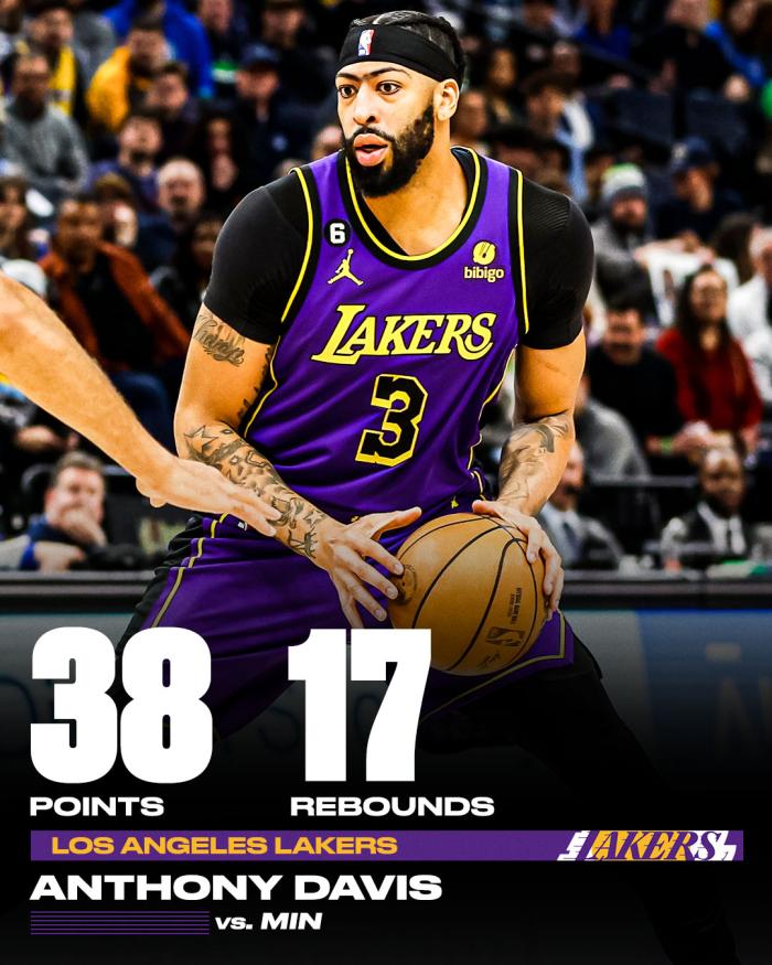 浓眉全场38分17篮板创纪录,本赛季第11次单场至少轰下30分15篮板高居联盟第一,也是联盟唯一一位超过10次做到的球员。