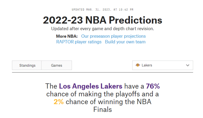 湖人39胜38负连续反超鹈鹕和森林狼直接从西部第9升到西部第7,与鹈鹕战绩相同,但赛季四次交手湖人对阵鹈鹕3胜1负占优;湖人本赛季胜率首次超过50%,根据权威网站FiveThirtyEight最新预测,湖人晋级季后赛的概率已经升到76%。