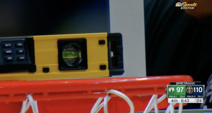 JRS直播网01月02日讯 ,NBA东西部榜首大战,末节场上出现意外情况,凯尔特人一方的篮筐歪了,没修好只能更换篮筐,导致比赛延迟将近40分钟,约基奇折返跑保持状态,布劳恩和球迷玩游戏,斯玛特直接坐在地板上。