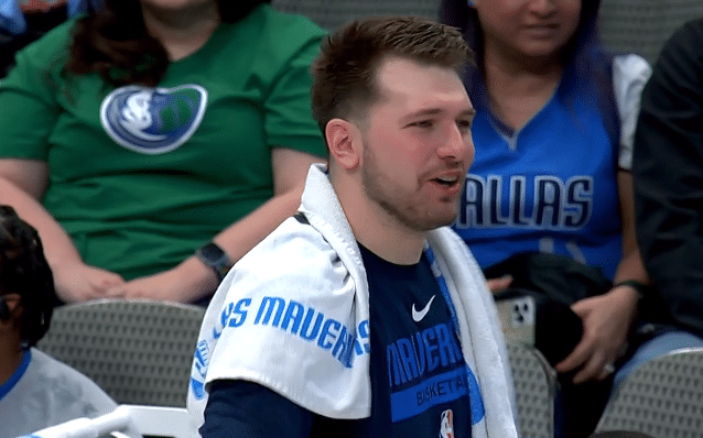 下半场,东契奇第三节继续组织进攻,杀到禁区上篮摔倒,眼角被打出血,可裁判却未吹罚,东契奇十分生气,找裁判理论吃到技术犯规,东契奇被激怒了,进攻端不断得分,末节上场仍旧砍分,8分07秒,独行侠领先21分,东契奇下场休息,主场球迷为他起立欢呼。
