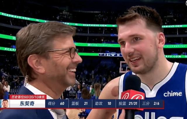 JRS直播网12月28日讯 ,NBA诞生非常疯狂的一场比赛。独行侠在主场凭借东契奇60分21篮板10助攻的神奇数据以及常规时间的绝平,加时126-121击败尼克斯。东契奇此役轰下NBA历史上第一个60+20+10的三双数据,创下NBA76年历史纪录。更重要的是,他给球队带来了一场不可思议的胜利。赛后,东契奇接受采访时也爆粗口:太TM累了。