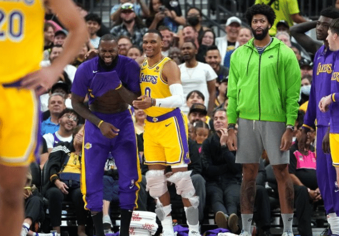 据湖人记者Dave McMenamin报道,湖人今日在录像会议后进行了一些低强度训练,随后他发现詹姆斯、戴维斯与施罗德在训练场附近开会讨论战术;他们之间进行了一番激烈交流,詹姆斯边说话边做出一些手势,说着说着,施罗德走向詹眉,做出手势发表自己的看法。