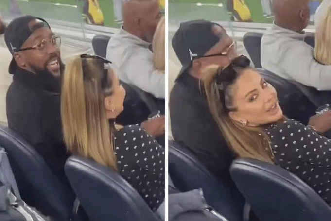 JRS直播网11月22日,乔丹之子马库斯-乔丹和皮蓬前妻拉尔萨-皮蓬又约会,一起观看NFL洛杉矶闪电队比赛,被一位激进的球迷劈头盖脸一通怒骂,两人镇定自若,没有理会这位男子的言语攻击。