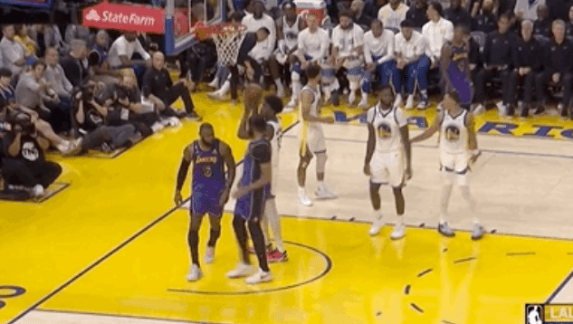 首节初期双方打得都很紧,注重防守,贝弗利很快开场2次犯规。首节还剩下8分29秒的时候,库里迎着詹姆斯出手造成犯规,詹姆斯不满裁判的判罚,摊手表达不满,还不忘抬头看现场大屏幕的回放。裁判依旧给了犯规,库里两罚全中。一直到面对怀斯曼打成2+1,詹姆斯打开新赛季得分账户,被现场的勇士球迷嘘声对待。