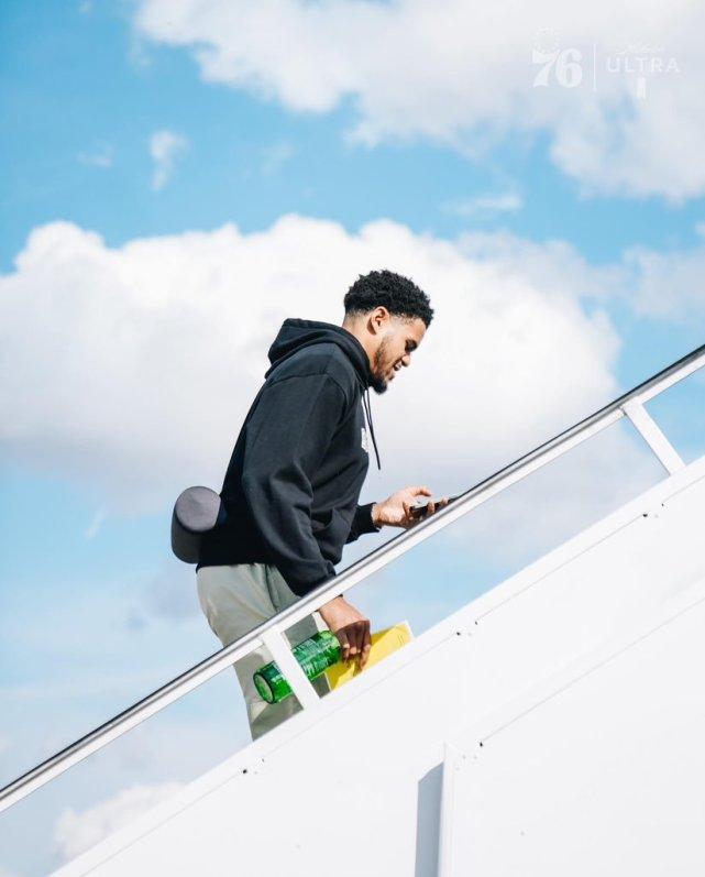 76人官方晒出的登机照上,哈登一身兜帽装,只见他走上舷梯时,还瞟了一眼镜头。恩比德、马克西等人也出现在照片上。新赛季的76人状态正佳,季前赛4战全胜,他们也是东部唯一一支季前赛保持不败的球队。