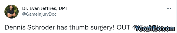 究竟施罗德的拇指韧带撕裂伤情有多严重?医学专家Evan Jeffries表示,施罗德已经接受拇指韧带手术,因伤休战4-6周,也就是至少伤停一个月。