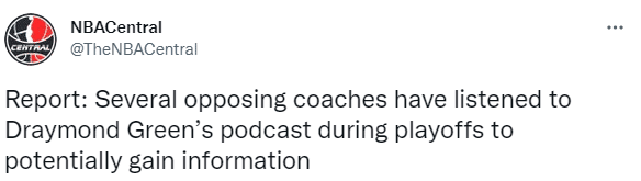 JRS直播网06月10日讯 ,总决赛三场战罢,勇士总比分1-2落后凯尔特人,库里场均30+表现出色,但德拉蒙德-格林的表现很不好,输球后继续做播客引发巨大争议,据美媒爆料,几位对手的教练在季后赛期间收听格林的播客,从而获取潜在的信息。