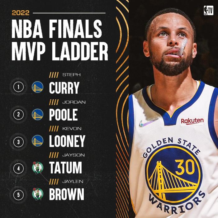 生涯至今,库里已经三次夺冠却从未夺得FMVP,今年将是库里圆梦的一个良机;总决赛前两场,库里场均轰下31.5分5.5篮板4.5助攻2抢断,力压众人排在官网FMVP榜第一名。