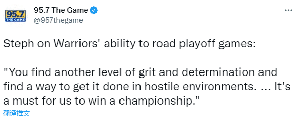G3将在凯尔特人主场对阵,对于客场作战,库里表示:明天球场上的气氛一定会非常棒;你会发现另一种程度的勇气和决心,并找到在恶劣环境中完成任务的办法;赢得总冠军对我们来说是必须的。