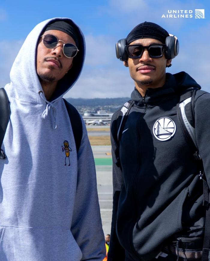 JRS直播网06月07日讯 ,经过总决赛前两场的对决,勇士和凯尔特人打成1-1平,今日勇士官方晒出众将登机飞往波士顿的照片,配文写道:从旧金山飞往波士顿;库里汤普森领衔出征客场,水花兄弟表情严肃,格林和维金斯合影,小佩顿、伊戈达拉都随队出征。