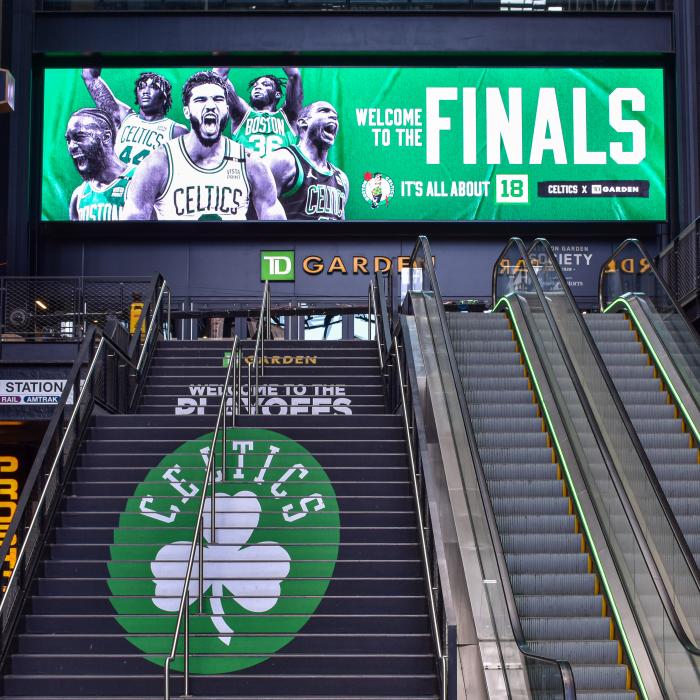 根据赛程,总决赛G3将在6月9日上午9点开打,双方转战波士顿,目前TD北岸花园球馆外已经贴满了“主场总决赛”的海报,总决赛氛围浓烈,这将是对勇士众将的一大考验。