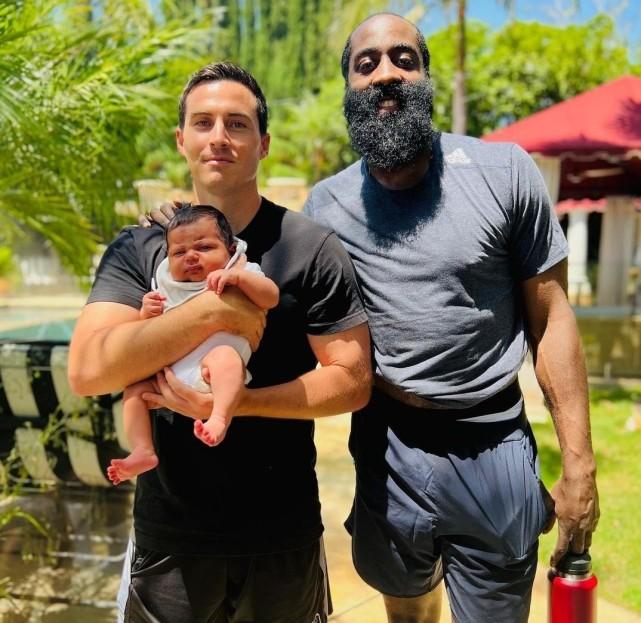 JRS直播网06月04日讯 ,NBA训练师Paul J. Fabritz更新社媒,晒出了他和哈登的合影。照片上,Fabritz抱着孩子,哈登一手拎着水壶,一手搂着他的肩膀,露出笑容。Fabritz写道:“和詹姆斯-哈登进行了休赛季早期的训练,很兴奋想要看看詹姆斯(哈登)通过完整的休赛期训练能做到些什么。一个关键的夏天!”