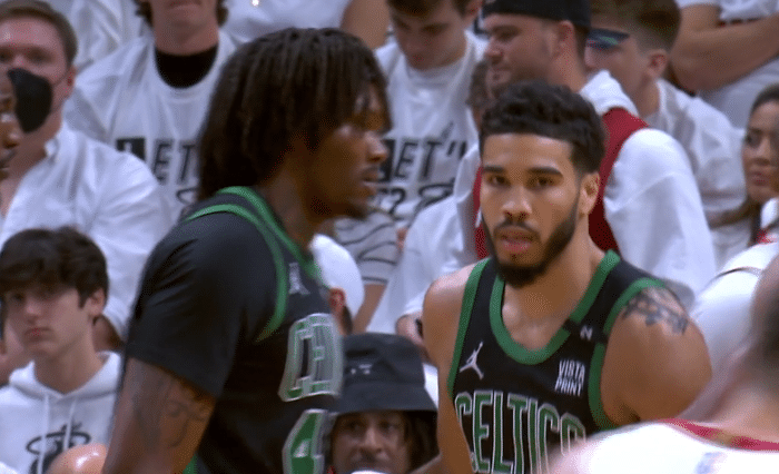 JRS直播网05月26日讯 NBA东部决赛的比赛继续进行,凯尔行人与热火队第五场的较量,两队迎来了天王山之战,前面的四场比赛,每场比赛的分差都达到了20分以上,上一场的比赛凯尔特人大胜热火队,上半场比赛打完的时候,凯尔特人就已经取得了24分的领先,最终凯尔特人迎来了一场酣畅淋漓的大胜。塔图姆迎来了大爆发,他16投8,罚球16中14轰下了31分8篮板5助攻2封盖的数据,正负值更是高达+37为全场最高,反观热火队这边,首发阵容极度低迷,5人仅仅得到了18分。