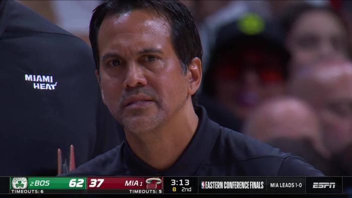 末节,布朗和斯玛特带队领先到30分,此时斯玛特怒吼宣泄情绪,热火不再派上首发,斯玛特继续得分,还剩6分18秒,绿军也换下主力,比赛彻底沦为垃圾时间,最终凯尔特人大胜拿下G2,系列赛大比分打成1-1;斯玛特火线复出成赢球大功臣,攻防两端都表现惊艳;布朗24分8篮板,全队6分得分上双。