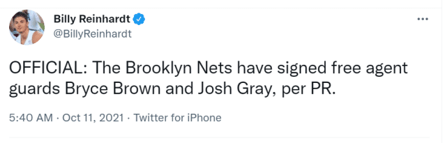 JRS直播网10月11日讯 ,篮网官方宣布,球队已经签下布莱斯-布朗和约什-格雷,裁掉了此前交易得到的萨姆纳。此前,纳什确认篮网已经做好准备欧文缺席全部主场比赛,而他们新签的两名球员都是后卫。如果欧文不能打主场比赛,篮网确实需要增加这个位置上的后备力量。