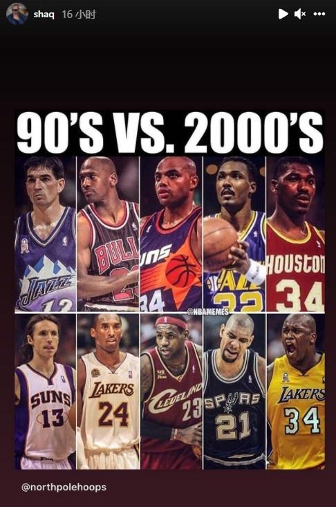 值得一提的是今日他还在社媒上也发了一个“讨论帖”转发了一张对比图,90年代五人组斯托克顿、乔丹、巴克利、马龙、奥拉朱旺VS00年代纳什、科比、詹姆斯、邓肯、奥尼尔。又是一个没有答案的对比,不过这阵容来看00年代后卫线防守差一些,不知你怎么看呢?