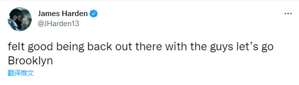 哈登也谈到欧文,他表示:我们都知道一旦欧文加入球队,我们能做什么事;今日一战,哈登上场24分钟9投3中拿到8分4篮板4助攻,外线三分6投1中手感糟糕,对于此战对阵雄鹿,哈登表示有些怪怪的;不过哈登赛后更新推特,发文写道:和这些家伙一起回到巴克利中心的感觉真好,加油布鲁克林。