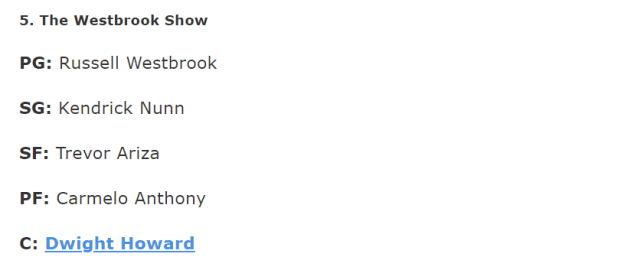 5. 威少个人秀阵容