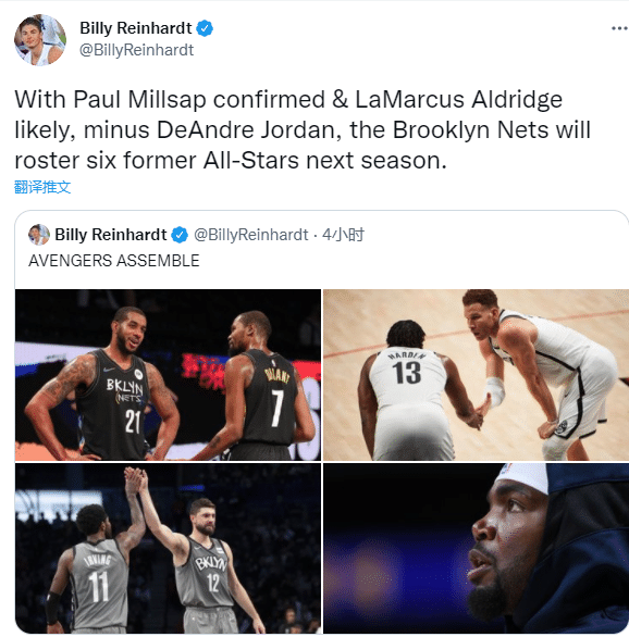 JRS直播网9月03日讯 随着米尔萨普同意加盟篮网和阿德获准重返赛场并且最可能重返篮网,篮网新赛季的15人大名单已经提前确定下来,随队记者感叹:史上最有天赋的阵容。