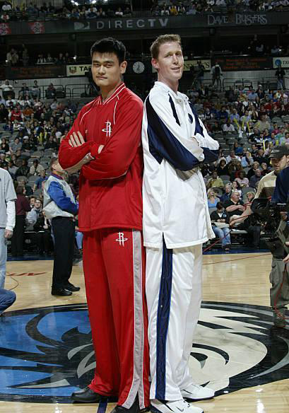 除了这三位,还有一些球员的身高跟姚明一样都是2米26,比如查克-内维特、西姆-布拉尔,但是他们有的只打了几场比赛就被裁掉,有的则一直是饮水机管理员,跟姚明不是一个级别的。