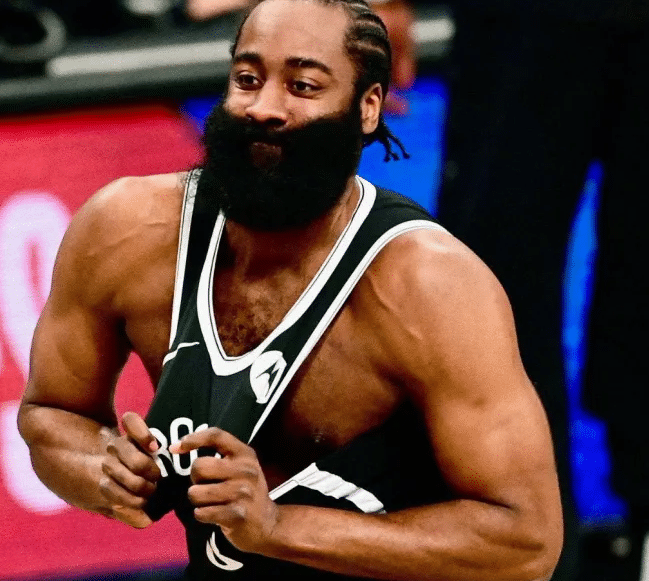 哈登紧勒球衣,露出了健壮无比的麒麟臂。上肢力量强壮可见,暴露在外的青筋向我们展示了暴力美学的实力。再配上哈登不修边幅的大胡子,说他的宋代梁山好汉鲁智深也完全说得过去。哈登一般不会卖力防守,但认真起来的哈登可是在全明星对位过字母哥的。能跟字母哥一对一进行肉搏战,哈登的身体强壮度真的比我们想象中要坚硬得多。