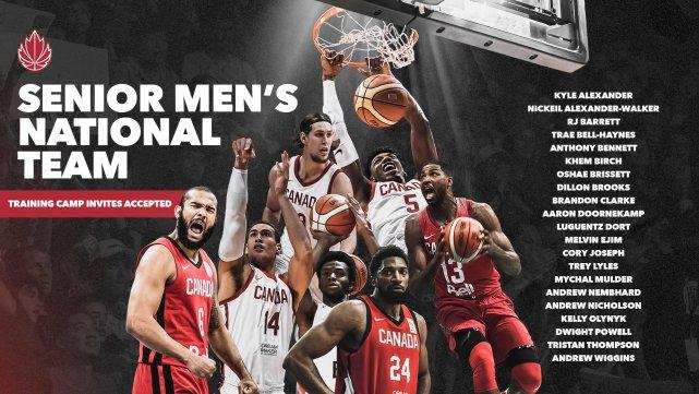 加拿大男篮训练营21人名单如下:凯尔-亚历山大、亚历山大-沃克(鹈鹕)、RJ-巴雷特(尼克斯)、贝尔-海恩斯、安东尼-本内特、肯姆-伯奇(猛龙)、奥谢-布里塞特(步行者)、狄龙-布鲁克斯(灰熊)、布兰登-克拉克(灰熊)、阿隆-多内坎普、特雷-莱尔斯(马刺)、吕盖兹-多尔特(雷霆)、梅尔文-埃希姆、科里-约瑟夫(活塞)、米卡尔-穆尔德(勇士);安德鲁-尼克尔森、安德鲁-内姆巴德、凯利-奥利尼克(火箭)、德怀特-鲍威尔(独行侠)、特里斯坦-汤普森(凯尔特人)、安德鲁-维金斯(勇士)。