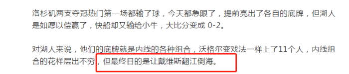 而湖人队这边已经进入正轨,詹姆斯关键时刻统治比赛,而戴维斯则在禁区翻江倒海,狂砍34分10篮板7助攻。湖人队很幸运,在季后赛关键时刻,沃格尔终于找到了最适合球队的阵容搭配。