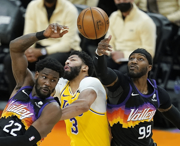 在今天的这场比赛中,湖人核心戴维斯发挥十分出色,全场比赛他出战39分钟,15投7中,罚球21罚18中,得到34分10篮板7助攻。而在比赛结束之后,有关于戴维斯的罚球问题,也是引发了太阳球员的不满,在本场比赛中和戴维斯多次对位的太阳前锋克劳德就抱怨道:“当对手有一个人罚球21次时,我们很难赢球。我们需要对他的防守做得更好。”在今天的比赛中,克劳德出战28分钟,8投2中,得到8分6篮板2助攻。