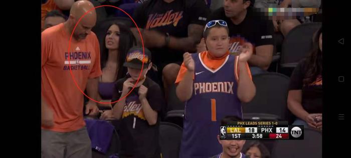 看到场上庄神被撞飞,艾顿完成暴扣,太阳队的小球迷高举双臂欢呼,除了庆祝太阳队得分得手,也嘲讽庄神的小心思被裁判识破,有趣的是,当镜头对准这个小球迷的时候,小朋友身后肤白貌美的美女球迷也瞬间抢镜,吸引了无数球迷的关注。