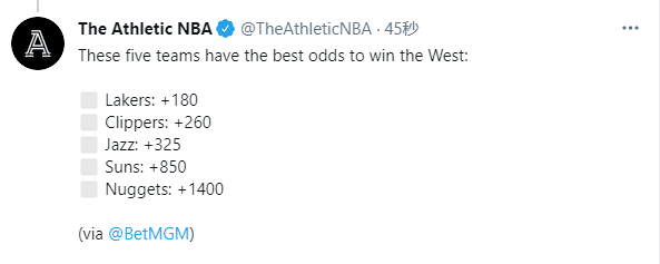 虽然湖人仅仅排名西部第七,但詹姆斯和浓眉全都摆脱伤病,卫冕冠军依旧是任何一支球队都不想碰到的对手,否则有些球队也不会故意输球躲避湖人;从最新的冠军赔率来看,湖人是西部冠军的头号热门,这意味着他们不仅很可能黑七,而且可能一黑到底。