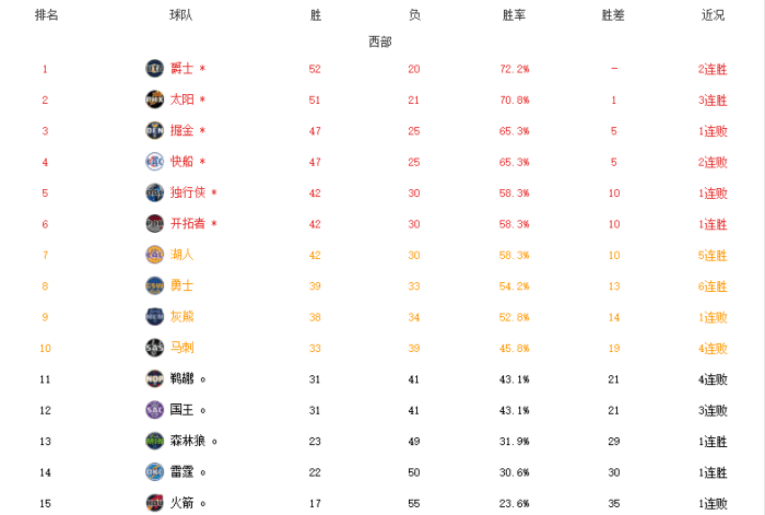 常规赛战绩33胜39负,排名西部第十;