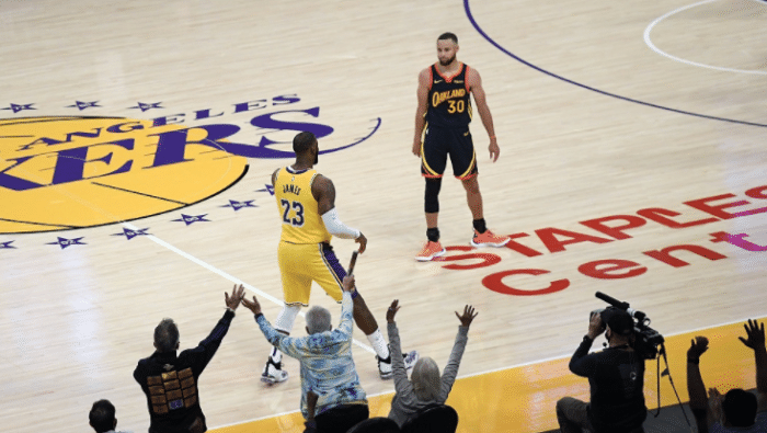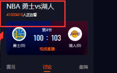 这场勇士和湖人之间的对决吸引了无数球迷们的关注,也掀起了收视狂潮,这其中在直播的时候,在线收看的球迷超过4100万,这样的数据是比总决赛还要高的。很明显收视担当是库里和詹姆斯,他们两人此役都有精彩的发挥,库里斩获37分,詹姆斯三双+关键球,对得起外界这么高的期待。