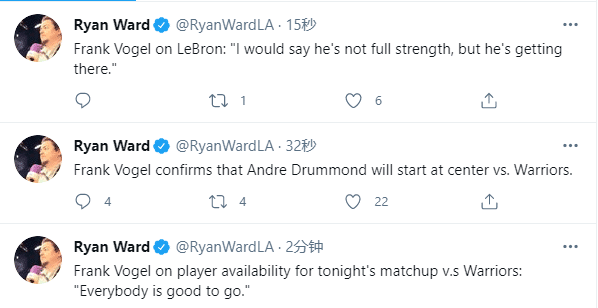 JRS直播网讯 时间5月20日,湖人和勇士大战赛前,沃格尔透露湖人全队所有球员都可以出战,全员出战勇士;沃帅还透露詹姆斯还没有100%完全恢复,但他已经恢复地差不多了。