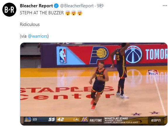 JRS直播网讯 北京时间5月20日,西部第七关键争夺战,勇士半场55-42领先湖人13分,库里上半场11投5中拿到15分,第二节投进三记不讲理三分,库里又开启杀神模式,尤其半场压哨三分瞬间引热议,美媒盛赞库里不可阻挡、太荒谬,名记发推库里续签4年2.15亿美元也少了。