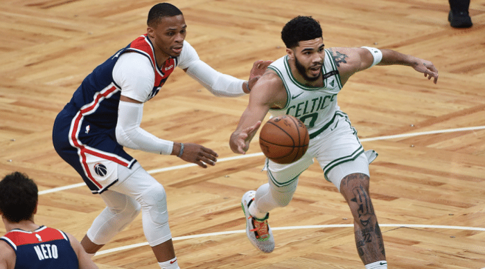JRS直播网讯 北京时间5月19日,附加赛首日,凯尔特人依靠着塔图姆斩获附加赛历史上第一个50+的得分,在主场击败奇才,成功拿下常规赛第七名,季后赛首轮对手是篮网。奇才将会和击败黄蜂的步行者展开对决,争夺常规赛第八名。这场比赛首节凯尔特人占据优势取得领先,次节奇才逆袭反超比分,第三节凯尔特人在塔图姆爆发的情况下打出一波17-2开局强势领先,他单节轰下23分。末节鏖战,凯尔特人稳住局面,成功拿下胜利,锁定常规赛第七名。