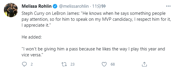 训练之后,库里感谢詹姆斯力挺自己该获得MVP;库里表示:詹姆斯知道他谈论这种话题时是会吸引外界的注意,但他仍旧是说我是MVP,我尊重这一点,我很感激他这么说。
