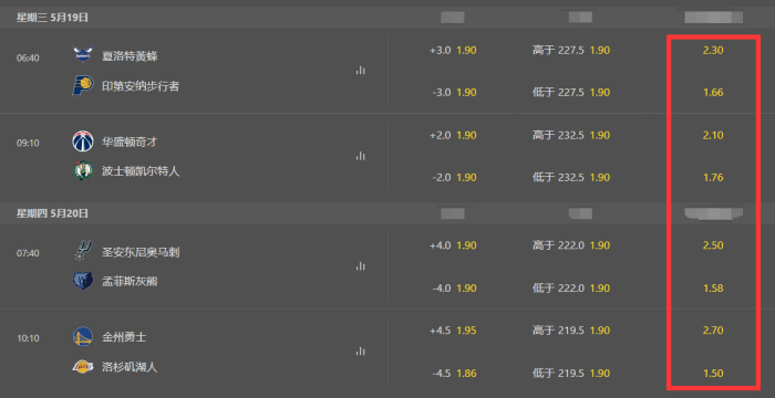 其余3组对决中,灰熊获胜的赔率是1赔1.56,也非常接近轻松击败马刺,这支昔日豪强很可能扮演陪太子读书的角色。而步行者是1赔1.66,凯尔特人则是1赔1.76。看起来,相关机构还是认为凯尔特人面对威少和比尔领衔的奇才,还是存在较大的难度。