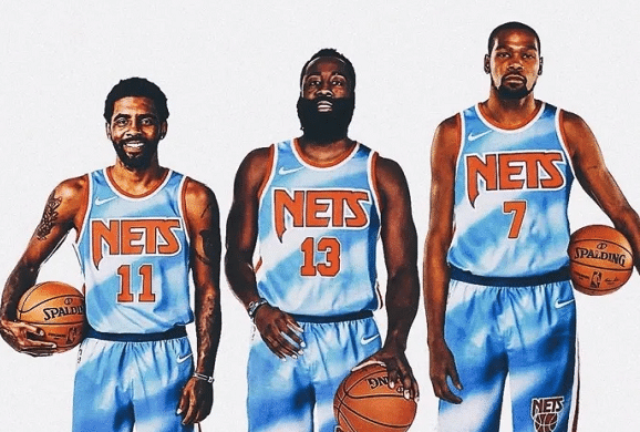 篮网也是一样的,杜兰特休战一年之后正式复出,联手欧文,这样的组合被认为可以搅翻东部格局。赛季开始不久之后,杜兰特的表现很强势,一度开局连续击败强队,欧文也有不俗的发挥,包括阿伦也表现抢眼,挤掉了小乔丹的首发位置。很快,篮网终于拿下了效力火箭8年之久的上赛季得分王哈登,大哥和三弟相遇在布鲁克林。付出了阿伦等人和选秀权,篮网组成三巨头之后带来的是防守的空虚,但这支篮网的进攻火力是历史级别的。