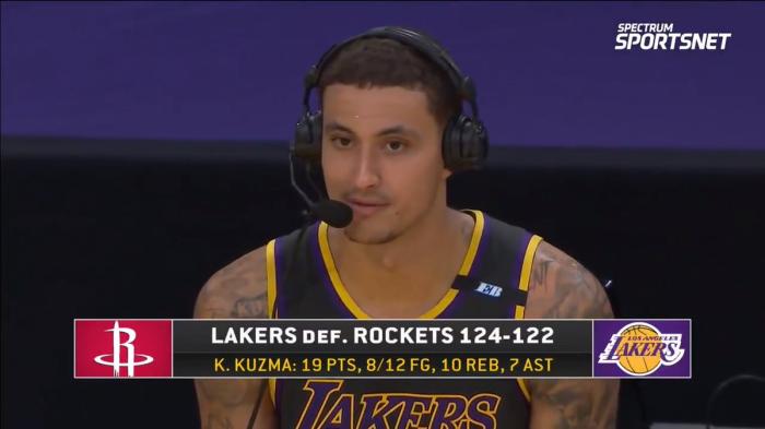 JRS直播网讯 今天早些时候湖人124:122击败了火箭队取得了三连胜,全场比赛他们痛击火箭内线豪取86分创造了队史纪录,库兹马完成了绝杀抛投,马修斯和小塔克联手抢断了奥利尼克赢下了比赛!