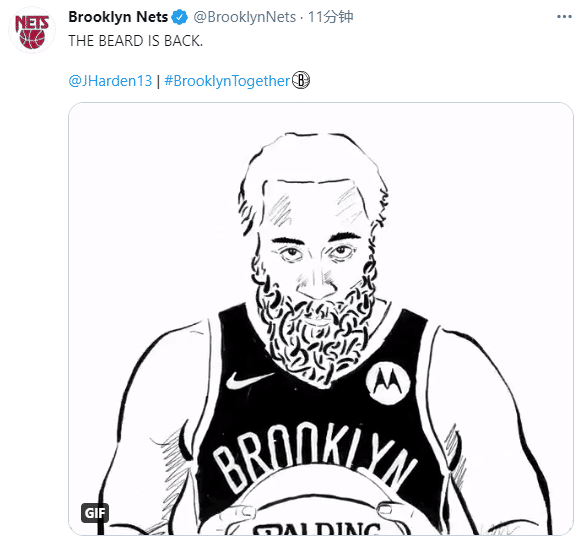 JRS直播网讯 北京时间5月13日,布鲁克林篮网官宣欧文因面部挫伤而缺席比赛,纳什透露哈登伤愈复出,杜兰特会继续出战背靠背,这意味着篮网三巨头又无缘联手;篮网官宣哈登回来了,发推写道:大胡子回来了,还配上一个gif动图。
