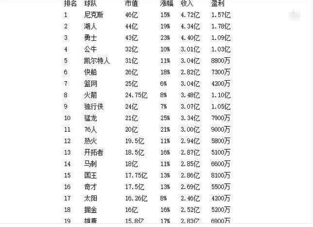 为什么这样说呢?众所皆知,如果没有纽约两个字,尼克斯可能价值会一落千丈,可是因为有纽约这两个字,这支球队一直受到超模贝拉、霉霉、斯派克李等等明星的喜爱,因为拥有全美最富裕的球迷群体,哪怕尼克斯战绩鱼腩多年,他们的市值已经是稳步提升,在最新公布的NBA市值排行榜中,这支已经连续多年没有进入季后赛的球队以54.2亿美元排在首位,不过正所谓否极泰来,烂到极致的尼克斯本赛季也开始复苏,他们很有机会在本赛季打入季后赛。