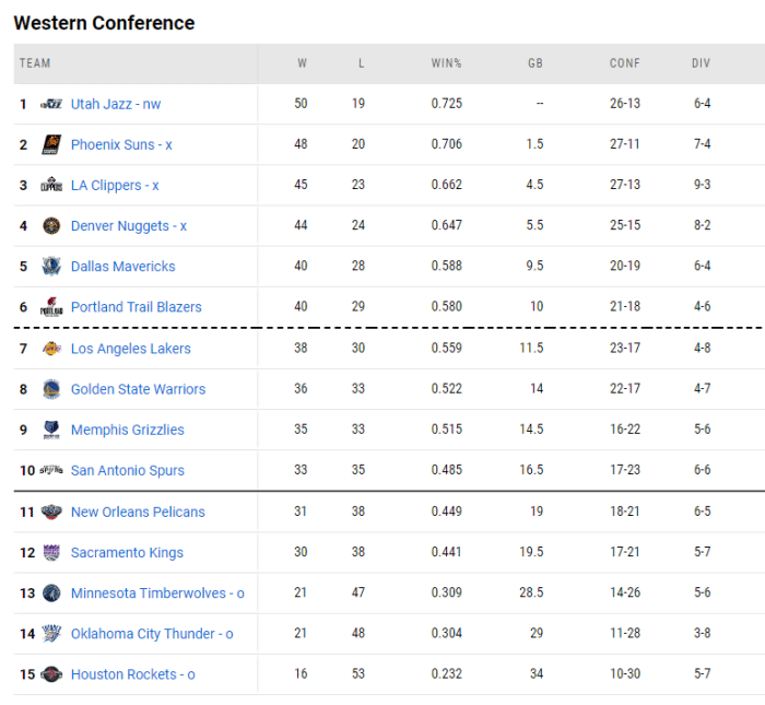 西部最新排名,爵士被勇士拉下马,但1.5个胜场差距也是让太阳难以追赶。快船现在守住西部第三,仿佛是西部前六的门神,即便湖人想进前六,那只能打快船!独行侠和开拓者势必要在接下来去竞争第五,谁都不想先遇到快船。而湖人目前局势不太乐观,想追上开拓者太难了!后面的勇士又追不上他们,老詹安心歇着吧,打火箭找找状态。后面的排名中,雷霆已经反超森林狼,近25场比赛输分490分,刷新历史纪录,火箭16胜53负傲视群雄:还有谁没赢过我?