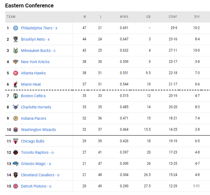 东部最新排名,篮网已经很难去竞争东部第一的位置,但由于雄鹿输球,加上篮网剩下的比赛比较轻松,他们大概率锁定东部第二的位置。雄鹿在第三的位置瑟瑟发抖,因为他们真的不太想遇到热火这个苦主。尼克斯和老鹰缠斗半个赛季,还在竞争第四,凯尔特人大将杰伦布朗赛季报销后,他们第七名的位置成为了香饽饽!黄蜂有很大可能逆袭绿军,以东部第七进入季后赛,当然,奇才也不能放弃希望,还是要冲击第八,第八名有两条命,第九和第十没有退路!东部垫底三队,魔术、骑士和活塞一家三口整整齐齐。