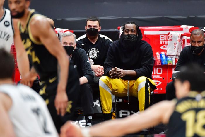 目前杜兰特、哈登和欧文三巨头仅仅只在一起打过7场比赛。