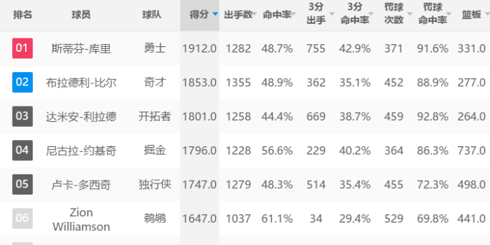 JRS直播网讯 NBA常规赛行将结束,单项数据王只剩下得分王还有悬念,抢断王属于巴特勒、盖帽王特纳、篮板王卡佩拉,得分王竞争者是比尔和库里,不过目前的情况出现了微妙的变化,比尔受伤了,而库里保持健康,同时他们所在的球队都只剩下4场比赛。比尔目前出战59场,总分1853分,场均得到31.4067分;库里目前出战60场,总分1912分,场均31.8666分。